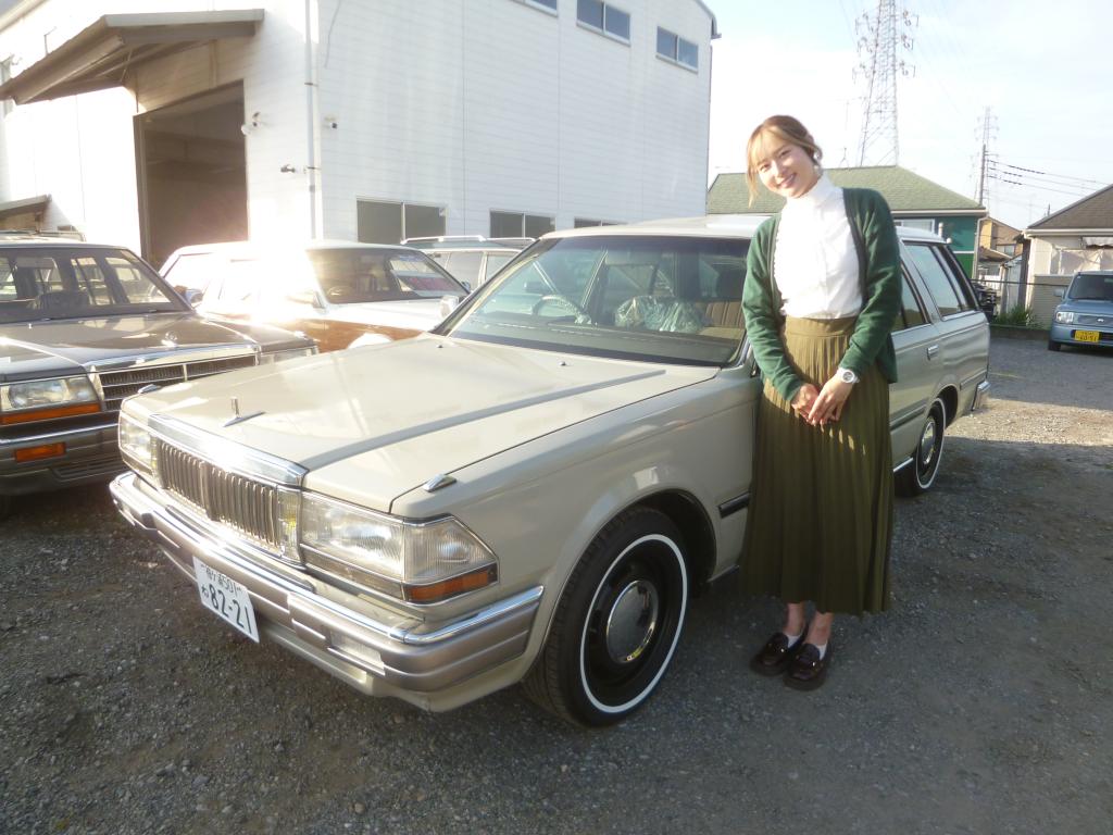 シルバーツートンのセドリックワゴンをお買い上げいただきましたM様は店頭で御納車させていただきました! 旧車は御納車してからが本当のお付き合いだと思っております!これからもよろしくお願いいたします!(松が丘店)